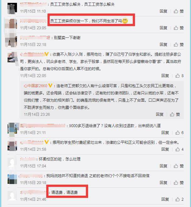 針對優(yōu)勝教育的承諾,不少家長(cháng)、員工卻不大滿(mǎn)意。有的家長(cháng)留言,只求退還學(xué)費;員工則質(zhì)問(wèn):工資什么時(shí)候可以發(fā)?